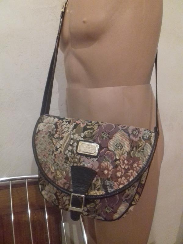 Отличная винтажная сумка .Ткань и натуральная кожа.В отличном состоянии.длинная ручка-110см.ручка регулируется.В нутри одно отделение и карман на замке.Высота-22см.длина 28см.