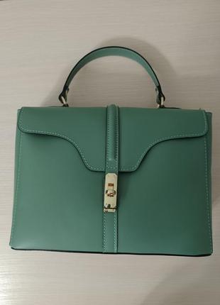 сумка середнього розміру з ремінцем. фото зі спалахом і без. приємний благородний зелений колір, під багато комплектів підійде. заміри в личку.