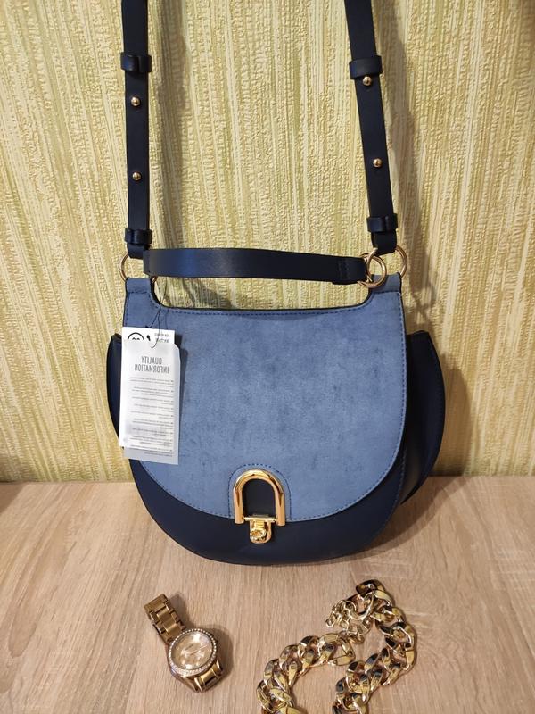 Сумочка виконана з штучної шкіри і замші. Якісна фурнітура золотого кольору. Сумка середнього розміру.