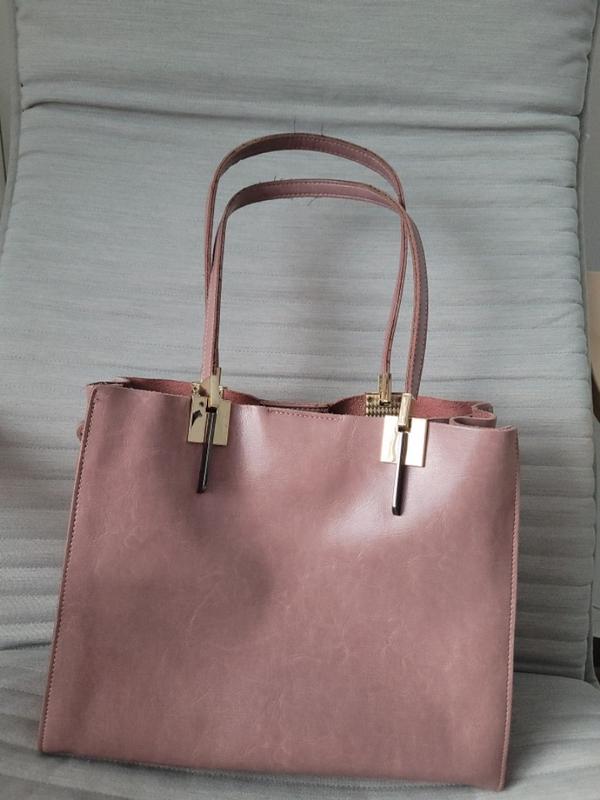 Сумка классическая, вместительная, кожа на подкладке. Размеры высота 24см, длинна 30, ширина 10 см, постельного розового цвета . Есть длинный ремень.