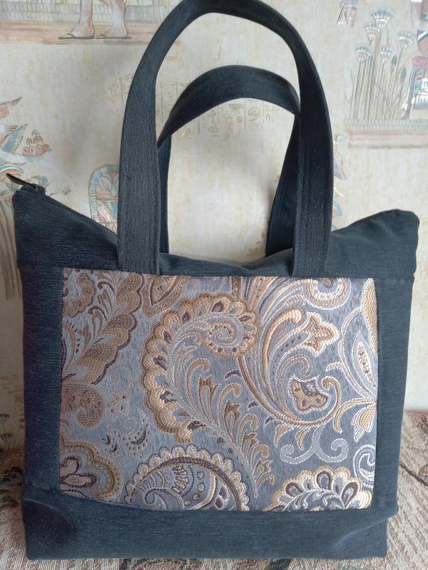 Отличная сумка пошита из джинсовой ткани и вставки разных оттенков одной ткани.Сумочка хорошо держит форму.Подкладка,нутренний карман для ключей. размеры 30/36/8.