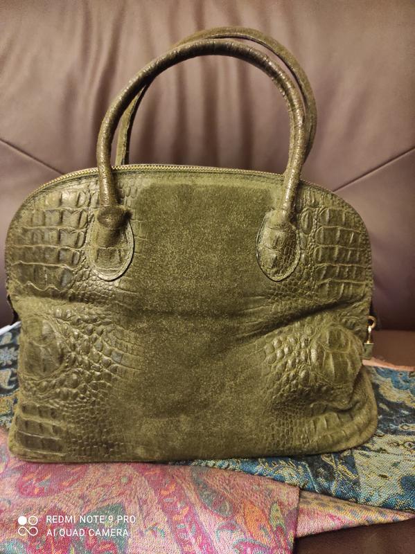 отличная стильная сумка, производства Испании. натуральная кожа с тиснением под рептилию. оливковый цвет, есть длинная ручка внутри на кармашке нюанс, в цене учтены, фото по запросу, никак не влияет.