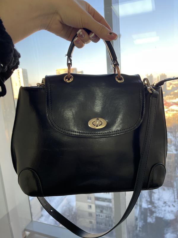 я сумка средних размеров, продаётся без длинной ручки (она от другой Сумки), размеры 37/24 Вместительная, имеет два кармашка для мелочи, карман со змейкой для документов внутри, перегородку на змейке на мягкой основе, и внешний карман на змейке, смотрится очень стильно, особенно углы) Следы носки незначительные, углы в идеальном состоянии, отправляю с авансом за дорогу в две стороны, или можем встретиться на Лукьяновской