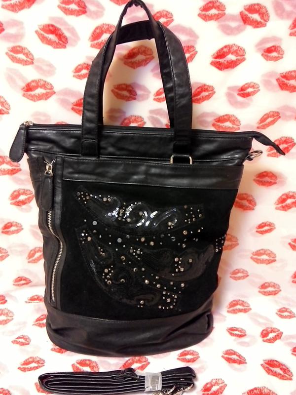 Нова стильна сумочка, матеріал якісна екошкіра, відмінно підійде для повсякденного використання, осінь зручна і містка, всередині два великих відділу і додатково маленькі, також є довга ручка, зовні є по одному кишені на заклепках, один попереду іншого ззаду. Є єдиний нюанс на ручках видно на 5 фото. Заміри: довжина 30 см, ширина 13 см, висота 39 див.