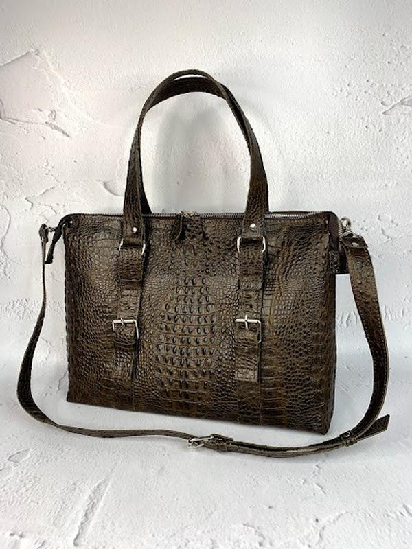 Сумка женская большая натуральная кожа коричневая под крокодила 1714