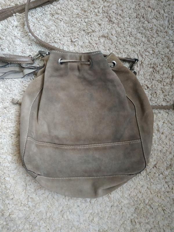 Сумка мешок в хорошем состоянии, натуральный замш, на внутренней стороне немного почистить, очень удобная и практичная, все замеры на фото.