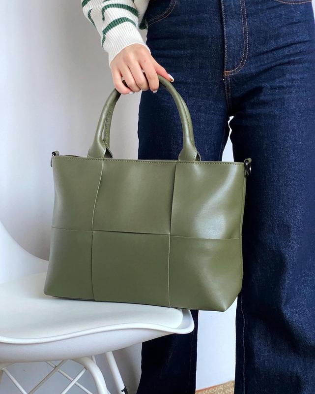 Модель 0040 Цена розница: 889 грн ▪️стильная ▪️удобная ▪️вместительная ▪️отлично подходит для формата А4 ▪️крупное плетение ▪️одно большое отделение, разделённое карманом на молнии ▪️есть внутренние карманы (один на молнии, один обрезной) ▪️ длинный съёмный ремешок ▪️материал: гладкая эко-кожа Размер: 34*26*13 см Цвет: хаки, чёрный с красным, чёрный, светлый беж, тёмный беж, коричневый, шоколадный