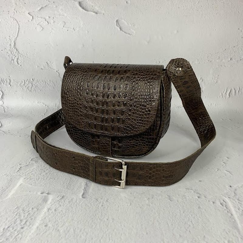 Сумка женская "римини" натуральная кожа, коричневая с тиснением под крокодила