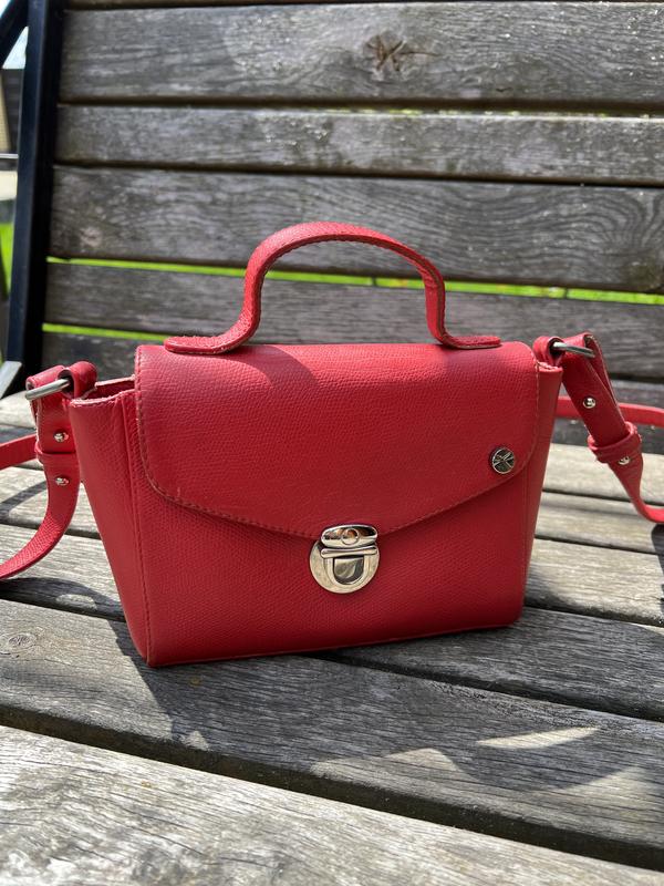 Мини сумка Kachorovska из красной кожи, на длинном ремешке и короткой ручке, можно носить как кросбоди, внутри кармашек на замке.