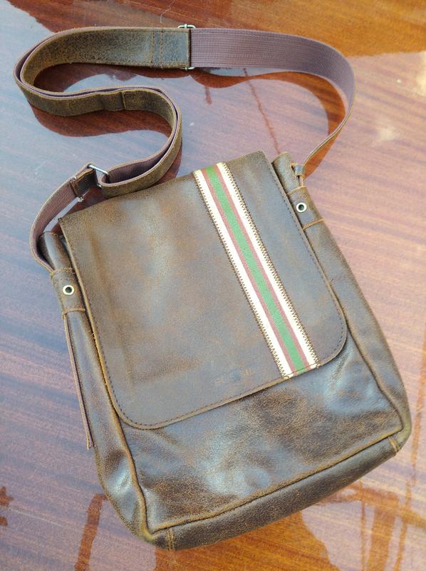 Сумка Fossil из натуральной кожи коричневого цвета. Три основных отделения, из ни два меньших на молнии. Размер 28х23х10см.