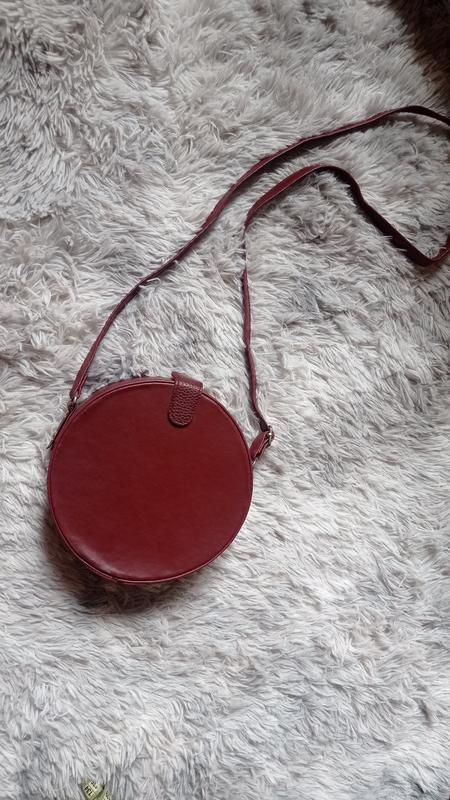 Чудова сумка, нова. Тримає форму. Насичений бордовий колір Діаметр 20 см Напівдовжина ручки 66 см