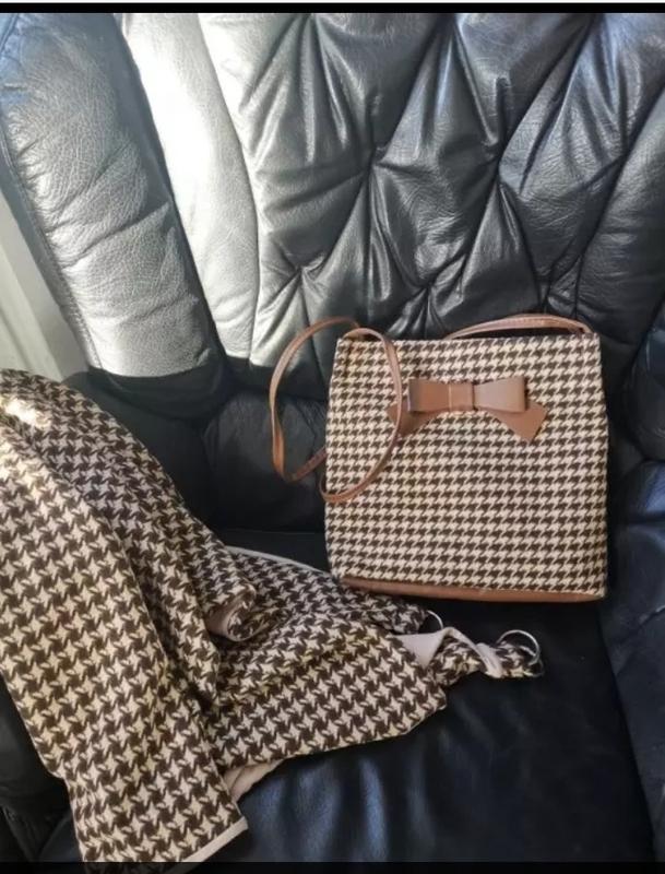 Нова,в упаковці дуже гарна сумочка. Тканина охфорд ,плетіння трехнить. Денце і ручки екокожа. Ширина 26 см, висота 25 див. Закриваються на кнопку. Виглядає дуже стильно і класно. Не велика,але дуже місткий. Гаманець,ключі, телефон, предмети косметики вміщуються без проблем.