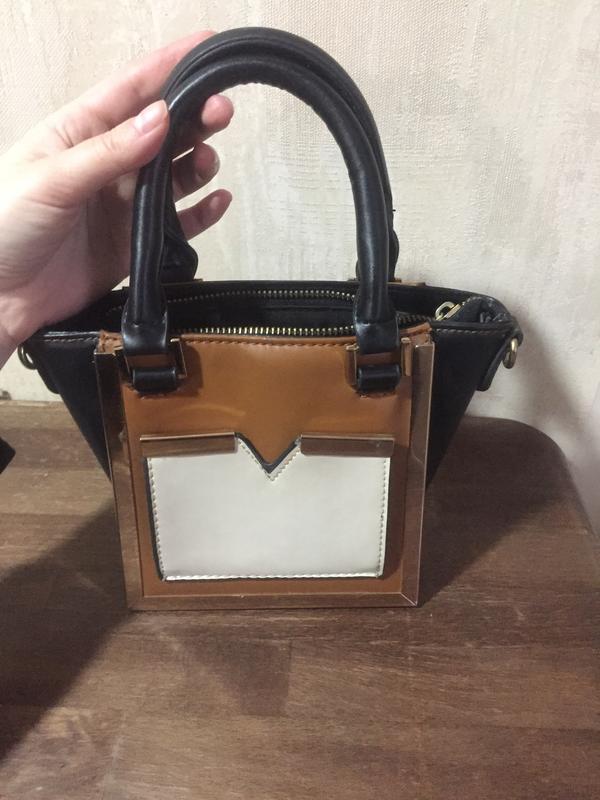 кожаная сумка-клатч Atmosphere сумочка черно-коричневого цвета с бежевым наружным функциональным карманом на маленьких ручках, новая 5/5 в носке была 1 раз, без дефектов подойдет под любой образ возможен торг