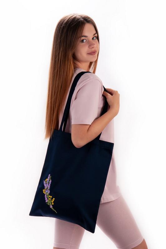 Еко-сумка із високоякісної саржі. Зручний розмір сумки та довжина ручки, яку зручно одягнути на плече та носити в руках. Ручки міцні, прошиті з подвійним підгинанням, надійно закріплені машинним рядком. Сумка декорована стильною вишивкою. Еко-сумка – необхідний аксесуар для сучасної людини, яка дбає про навколишнє середовище. Полотно: саржа Склад: 80% поліестер, 20% бавовна. Рекомендації щодо догляду: прати при температурі не більше 30°C. Довжина виробу 40 Ширина виробу 34 Довжина ручок 66