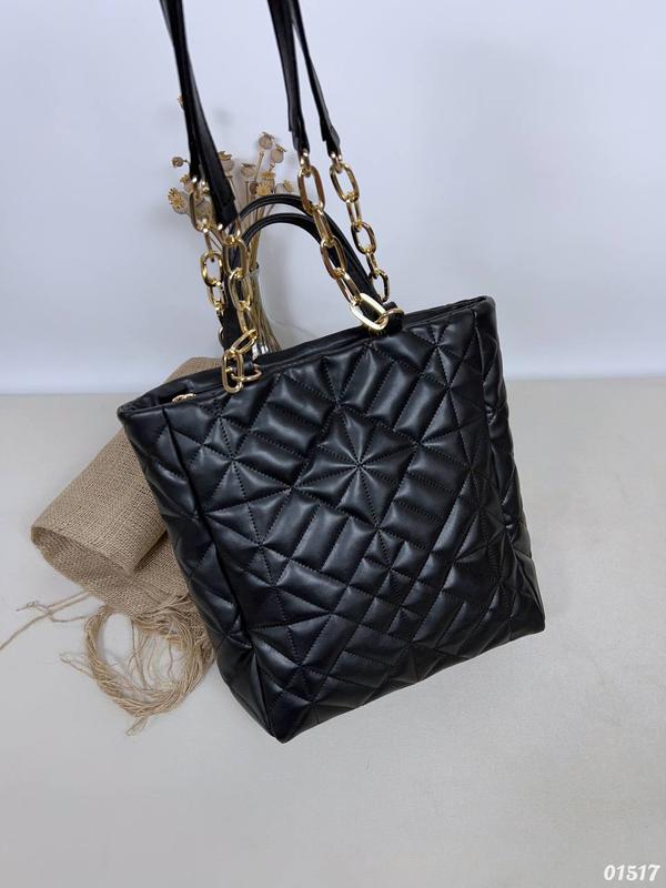 💛💙Шикарна стьобана сумка шопер Якість ТОР! Елегантна, м‘яка, вмістка, трендова модель Турецька еко шкіра гладка Одне відділення з підкладкою Всередині три кишені, дві з яких на блискавках Сумка повністю закривається на блискавку Фурнітура золото Довжина внизу - 29 см Довжина зверху - 32,5 см Висота - 31 см Ширина - 12,5 см Код 01517 Кольори: чорний ($) 799 грн.