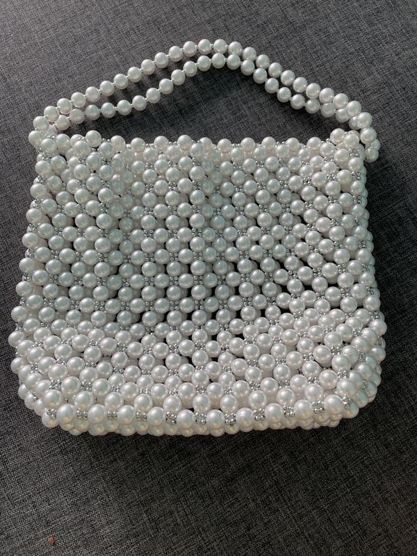 Сумка из акрилового белого жемчуга, сптелена вручную. Очень вместительная. Возможна еще металическая цепочка с карабинами. Сделана в стиле модной сумки zara (фото #2)