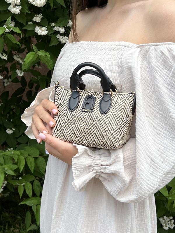 Невероятная мини furla calipso оригинал ! Подойдёт под любой образ , качество невероятное Furla Calipso — небольшая сумка через плечо из полипропиленовой жаккардовой ткани с геометрическим рисунком. Модель можно носить двумя способами: как дамскую сумку, так и через плечо благодаря ремню в крупный рубчик. Кожаный логотип Arch спереди завершает аксессуар. - Верхняя застежка на молнии. - Гальванизированное покрытие цвета светлого золота.