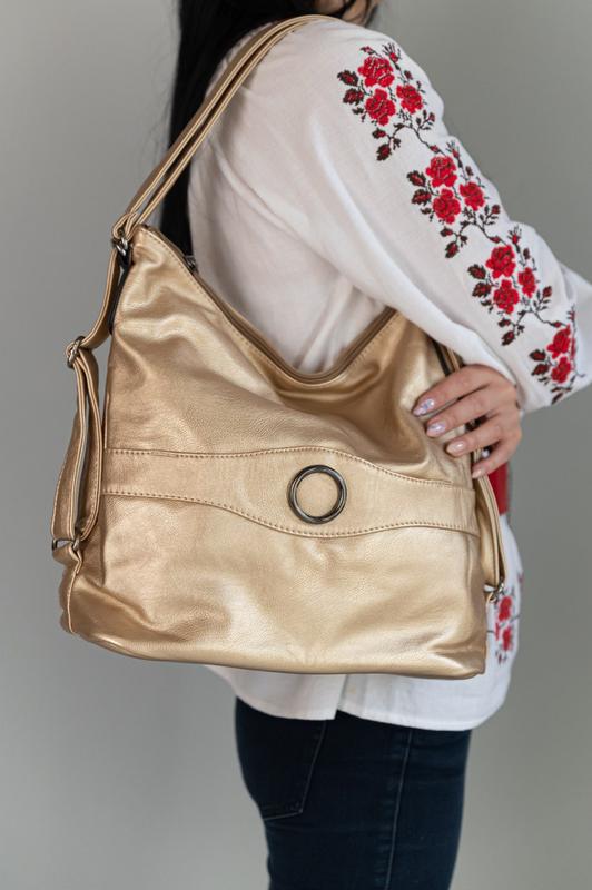 Повседневная сумка Сумка на одно большое отделение. Внутри подклад, независимый карман на молнии и по бокам дополнительные карманчики. С тыльной стороны вертикальный врезной карман на молнии. Несъёмный плечевой ремень регулируется. 📌 Art.8261, 8689 📌 Материал: эко кожа 📌 Размер 32*31*11 📌 Цвет: золотой