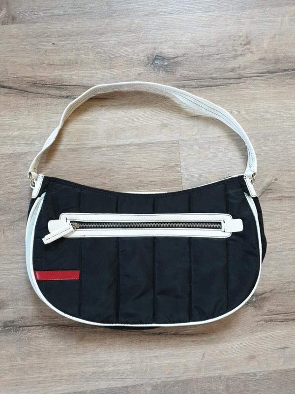 Сумка в спортивном стиле, текстиль, плащевка, кожзам, на короткой ручке, новая, 2 отделения, имеет небольшой дефект на ручке (см фото) размеры 36х20 см