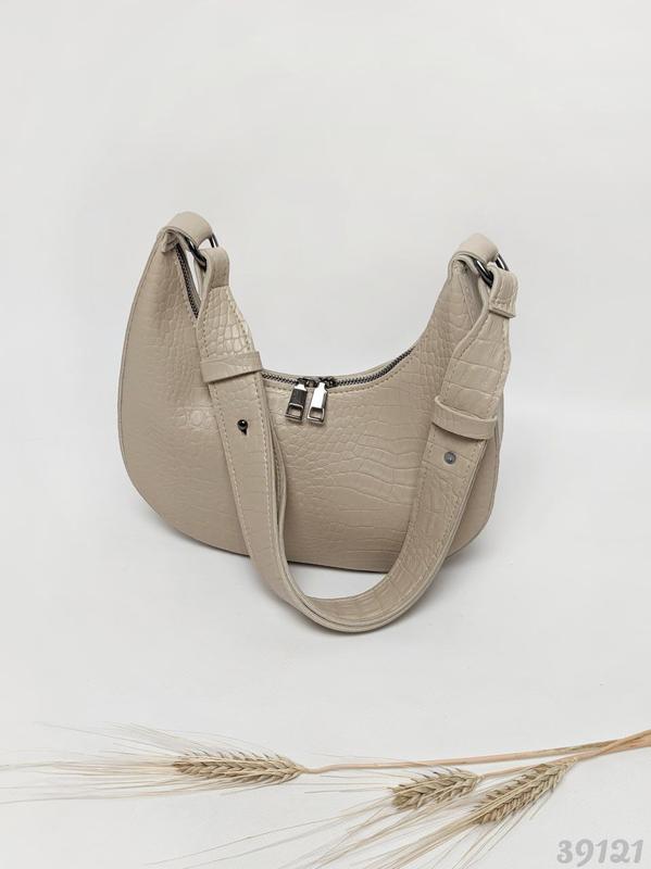 В наличии! Полукруглая стильная сумка на широком ремне Качество ТОР! Турецкая эко кожа рептилия Одно отделение с подкладкой Внутри карман на молнии Фурнитура темный никель Высота ручки - 36 см 26*15*7,5 см Высота сбоку до ремня 22 см Код 39121 Расцветки: черный, белый, беж