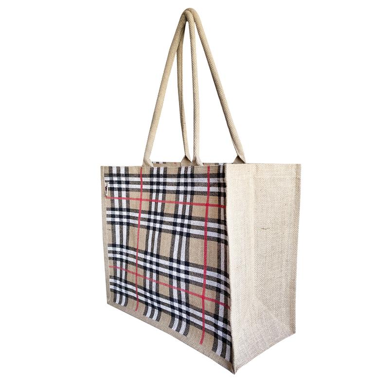 Эко сумка джутовая в клетку silk route 42х32х20 см.