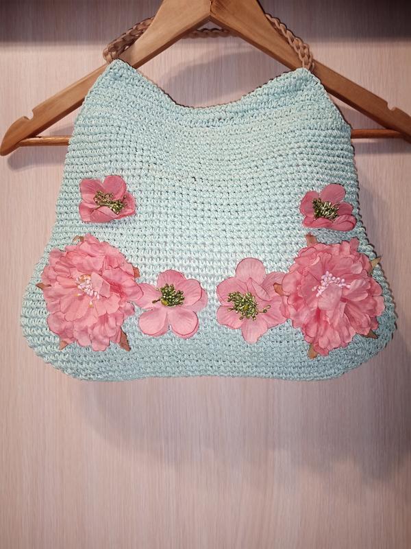 красива сумочка з квіточками, на кнопці, в середині підкладка в ідеальному стані, в середині є карманчик на замочку, розміри: висота 30см, ширина знизу 36 см, ширина зверху 28 см, довжина ручки 30см