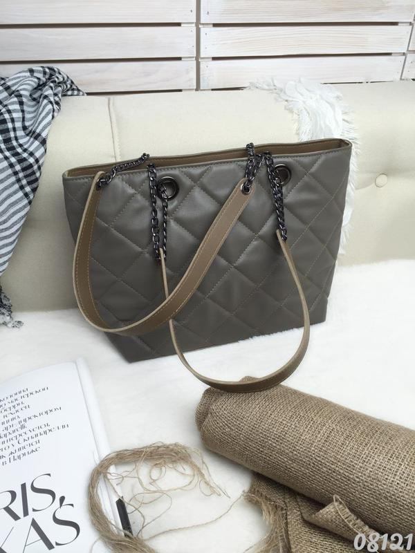 В наличии!! Большая стеганая сумка шоппер Смотрится круто, очень практичная и вместительная, легкая Качество ТОР! Турецкая эко кожа Одно отделение с подкладкой Внутри карман на молнии м карманы для мелочи Ручки с цепочками, высота - 32 см Сумка закрывается полностью на молнию Фурнитура темный никель Длина по дну 32 см Длина вверху 39 см Высота 26,5 см Ширина 12 см Код 08121 Расцветки: черный, хаки, св беж Св беж сейчас имеет ручки темно-бежевые