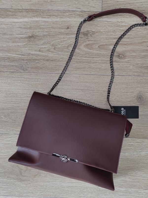 Продам нову жіночу сумку бордового кольору або кольору марсала. Сумка із біркою. Кількість відділень: 2 Матеріал верху: екошкіра. Кишеня на блискавці ззаду: 1 Кишеня на блискавці всередині: 1 Матеріал підкладки: Текстиль Входити до комплекту довгий ремінець.
