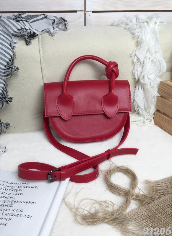 В наличии!! Полукруглая модель кроссбоди с узлом на ручке Смотрится стильно и оригинально за счет своего дизайна Ручка имеет скорее декоративную функцию, нежели практичную Качество ТОР! Турецкая эко кожа гладкая и рептилия Одно отделение Один кармашек Ремень длинный, регулируемый - 112 см Фурнитура никель светлый 23,5*16,5*6,5 Код 21206 Расцветки: красный, черный