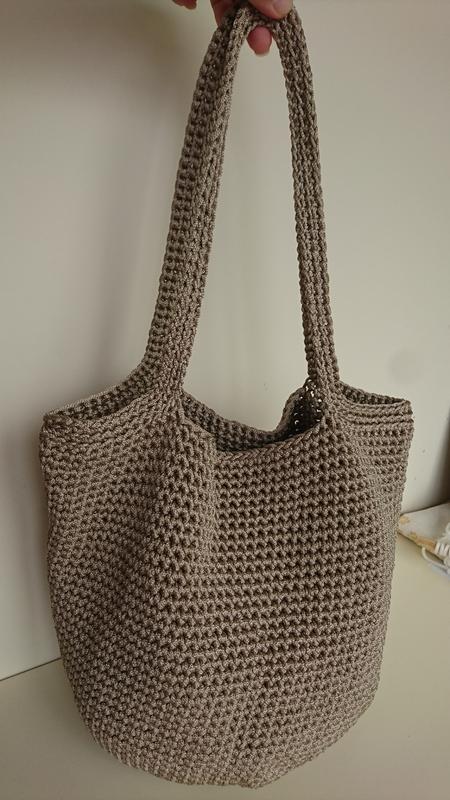 Сумка вязаная шоппер выполнена в красивом цвете каппучино. Новая. Handmade. Связана из качественных турецких ниток, мягкая, не жесткая, 100% полиэстер. Нитка блестящая, не сыпется как джут. Размеры на фото.