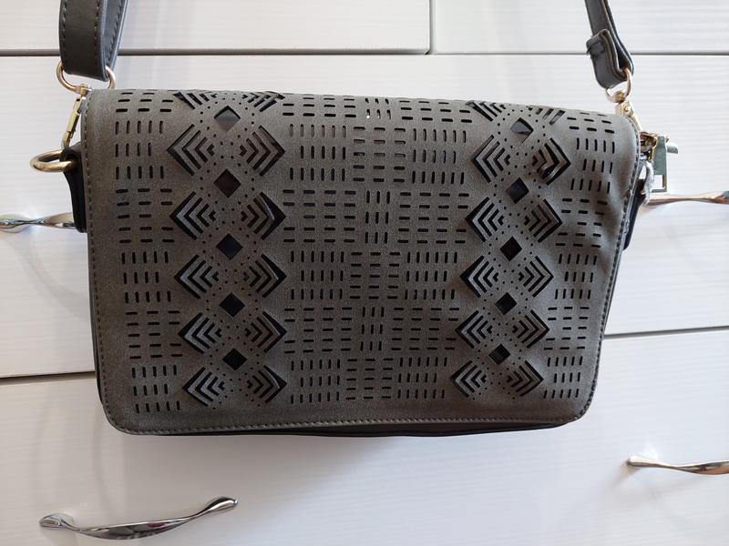 Дуже красива сіра сумка із замшою. Нова, носилася тільки два рази. Слідів зносу немає. Дуже зручна також є ремінець який можна регулювати.