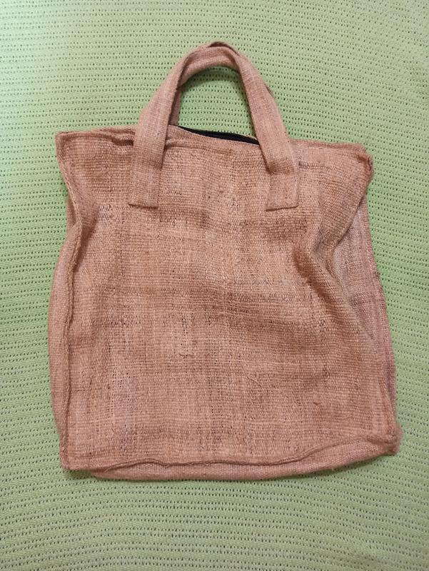 Сумка из мешковины с подкладкой ширина 35 см, высота 36 см, ширина боковой стороны 5 см, длина ручек 37 см, сверху застежка змейка.
