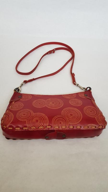 Червона шкіряна сумка багет, кожаная сумка багет, вінтажна сумка, сумка винтаж