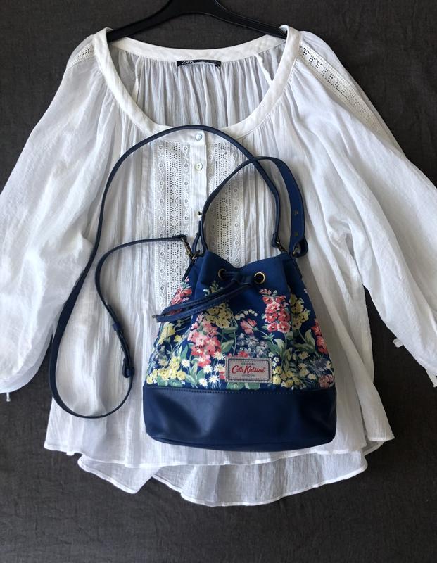 Сумка CATH KIDSTON Small HERBACEOUS BORDER CANVAS & LEATHER BUCKET BAG. Натуральная кожа , текстиль с тефлоновым покрытием. Размер: Высота 24 см Ширина 22 см Глубина 15 см Ручки регулируются. Можно носить на плече, на маленькой ручке. Дефектов нет. Блуза из первого фото ЗДЕСЬ: https://shafa.ua/women/rubashki-i-bluzy/bluzy/99217376-bluza-legkaya-s-shityom-zara-hlopok