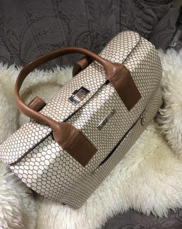 Очень красивая , необычная, структурированная, в то же время из мягкой кожи сумка- саквояж. Напоминает чем то ретро сумку врача) В виде сот с теснением. Внутри 2 отдельных отделения. Сбоку карман на молнии. Очень вместительная. Высота 25. Ширина 36. Ширина дна и боков 19. Ручки 60 см