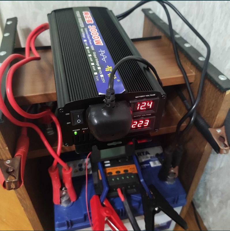 Инвертор с чистым синусом 3000W (1500W) Преобразователь с 12 В - 220 В Принцип работы инвертора: Устройство преобразования энергии, преобразующее входной постоянный ток низкого напряжения в выходной стабильный переменный ток высокого напряжения. Инструкции: Выходное напряжение батареи должно соответствовать входному напряжению постоянного тока инвертора. Например, для батареи 12 В следует выбрать инвертор 12 В , а при подключении следует различать положительные и отрицательные полюса батареи. Функции: Преимущества инвертора с чистой синусоидой. 1: Корпус из алюминиево-магниевого сплава, легкий вес, хорошая теплопроводность и дополнительная система из двух встроенных вентиляторов, может быстро снизить температуру компонентов, работает в течение длительного времени и не влияет на его производительность. 2: Чистая синусоида, интеллектуальный фильтр, не мешает работе электроприборов, защищает электроприборы. Благодаря высокой эффективности преобразования (до 90%) низкое энергопотребление самого продукта может значительно продлить срок службы батареи. 3: Вы можете использовать электрооборудование, включая телевизоры / светодиодные фонари / ЖК-дисплеи, особенно приборы с индуктивной нагрузкой, такие как холодильники, морозильники, индукционные плиты. 4: Инвертор с чистой синусоидой, 220 В для городского электроснабжения и качества электроэнергии. 5: Восьмибитная интеллектуальная защита: защита от перегрузки, защита от высокого напряжения, защита от низкого напряжения, защита от перегрева, защита от обратного подключения, защита от короткого замыкания, защита от перегрузки по току, страховая защита, интеллектуальное управление чипом, идеальная защита. 6: Напоминание зуммером. При срабатывании любой защиты инвертора инвертор немедленно отключает питание, нагрузка переходит в режим защиты и оповещает об этом людей звуковым сигналом. Комплект: 1. Инвертор размеры: 290х120х70 2. Кабеля с захватами для аккумулятора