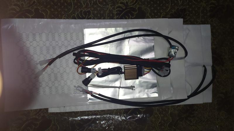 Комплект принадлежностей для установки подогрева на два сидения автомобиля или чего-либо другого. В комплекте четыре углеродистого мата размером 52см×28см, две трехпозиционные кнопки-регуляторы обогрева, полный комплект проводки 2.3 м, клейкая лента и пластиковые хомуты крепления.