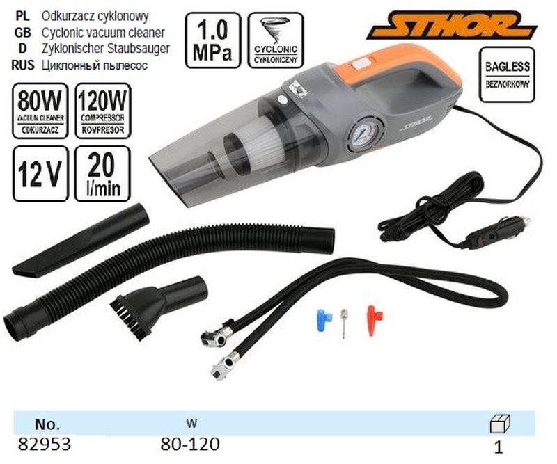 Пылесос автомобильный польша 12в 80вт hepa компрессор 120вт sthor-82953