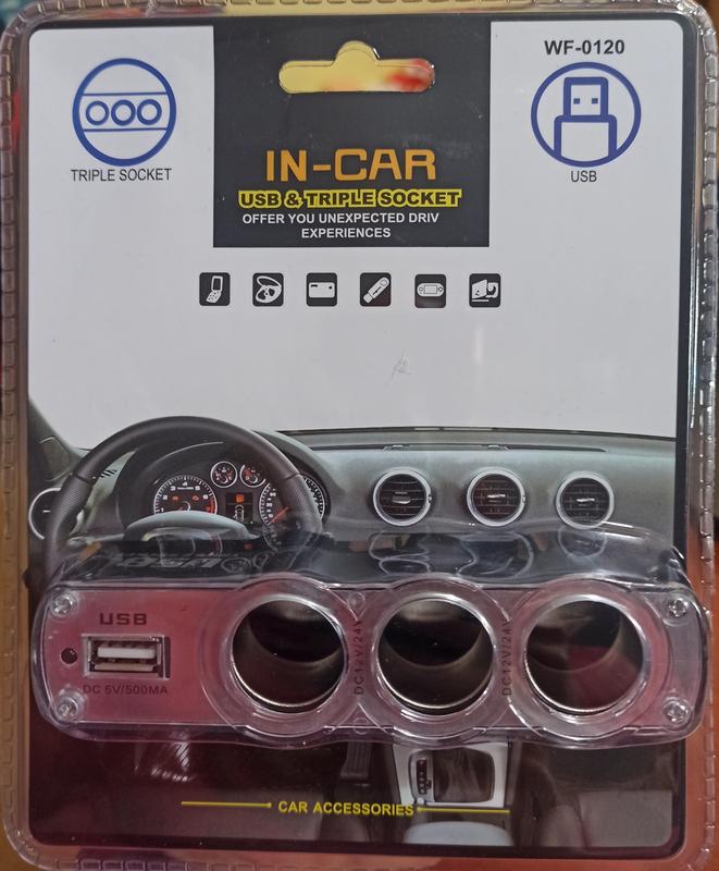 Разветвитель к прикуривателю 3в1, 2 USB, 500mA IN-CAR - отличного качества. Предназначен специально для подключения разных устройств в транспортном средстве. Это устройство имеет отношение к электричеству, а не к электронике, поэтому автоаксессуар достаточно прост в техническом плане и в своей конструкции. С данным разветвителем прикуривателя, автовладелец имеет возможность не выходя из транспортного средства зарядить необходимое количество различных устройств. Имеет простую конструкцию и достаточно надежен в использовании. Изготовлена эта система благодаря качественным материалам, что увеличивает максимальное время эксплуатации, а также обеспечивает прочность и безопасность. С помощью устройства можно заряжать мобильные устройства. Страна производства - Китай.