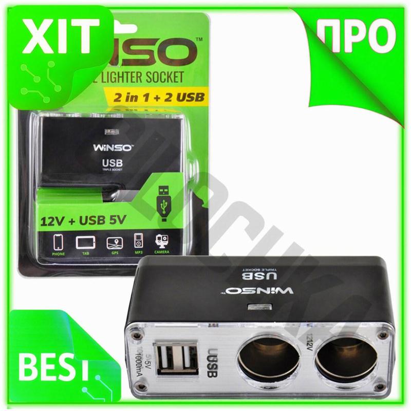 Ve разветвитель прикуривателя winso 2в1 new version с usb для автомобиля 12v и зарядки уст...