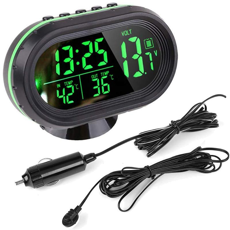 Автомобильные часы VST 7009V помогут не только знать точное время, но и покажут напряжение бортовой сети, температуру внутри салона и на улице за окном Преимущества: - Простое подключение - Подсветка дисплея - Наличие будильника - Встроенный вольтметр - Подходит для всех автомобилей Описание: Подключаются в прикуриватель автомобиля и обладают рядом очень полезных и информативных функций, с помощью которых Вы и Ваши пассажиры смогут знать точное время, температуру как в салоне автомобиля так, и на улице, а также одной из важнейших функций является отображение уровня заряда аккумулятора. Часы в машину устанавливаются на приборную панель на двухсторонний скотч. Питаются от прикуривателя автомобиля 12 вольт. Для отображения наружной температуры необходимо выводить датчик наружу (идет в комплекте). Характеристики: - Тип: часы в салон автомобиля / автомобильные часы с термометром; - Тип механизма: электронный; - Индикация времени: электронный; - Циферблат: арабские цифры; - Материал: пластик; - Материал циферблата: пластик; - Сменная подсветка экрана; - Источник питания: от прикуривателя, батарея (нет в комплекте); - Функции БК: Текущее время, Температура воздуха, Напряжение бортовой сети; - Будильник: да; - Диапазон измерения температуры: -50...+70°С; - Рабочее напряжение: 12V-24V; - Размер: 9.5 х 6 х 4 см. Комплектация: - Часы в автомобиль VST 7009V - Датчик температуры - Разъем для подключения к прикуривателю авто - Упаковка