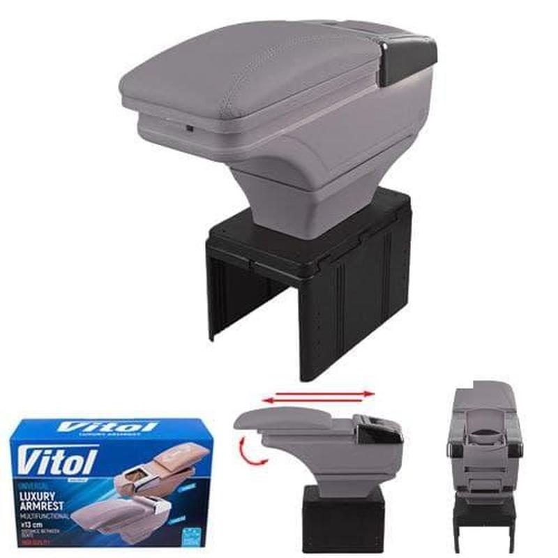 Подлокотник Vitol HJ48015G – это новый, улучшенный и значительно повысивший свою функциональность, автомобильный подлокотник. Для увеличения срока службы изделия, при производстве, были использованы только материалы повышенной устойчивости к механическим воздействиям. Для крышки подлокотника Vitol используется обивка из высококачественной эко- кожи, которая оставляет приятные тактильные ощущения, как у более дорогого материала. Так же крышка подлокотника имеет дополнительный слой эластичного пенополиуретана, что добавляет мягкости и комфорта руке водителя. Материал успешно противостоит солнечным лучам, пыли, грязи и показал высокую устойчивость при каждодневном использовании. В модели предусмотрен большой отсек для хранения документов или необходимой авто-мелочи. При необходимости верхнюю крышку подлокотника можно сдвинуть вперёд для более комфортного положения. Во внутреннем отсеке присутствует защитная накладка, позволяющая хранить в нем любые металлические предметы и не переживать, что будут образовываться царапины во внутреннем пространстве подлокотника. Так же в задней части подлокотника размещён полноценный подстаканник и пепельница. Новое универсальное крепление значительно облегчает процесс установки подлокотника в автомобиль. Установка подлокотника теперь стала ещё проще и не потребует от вас особых навыков. Подлокотник снабжён полным монтажным комплектом, что позволит его установить практически в любой автомобиль, в пространстве между передними, водительским и пассажирским, сидениями. Подлокотник Vitol HJ48015G ггарантирует вам комфортное управление транспортным средством, а также снятие статической нагрузки с локтевого сустава. С подлокотником Vitol ваш автомобиль станет более изысканным и индивидуальным.