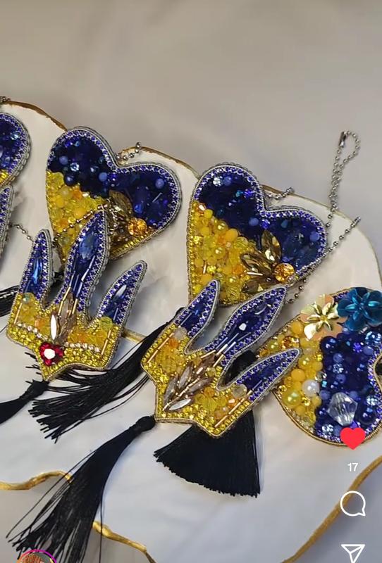 Підвіска в машину виконана в патріотичних кольорах.Будь яка на вибір