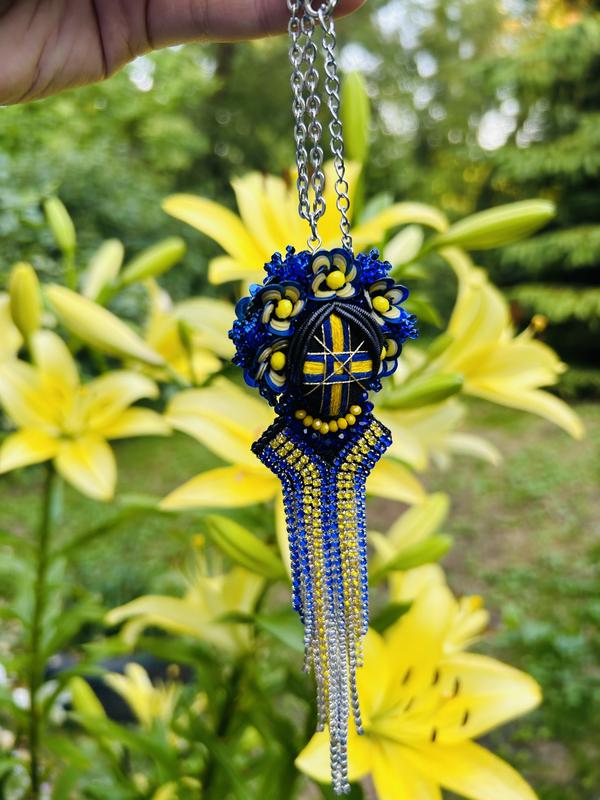 Чудовий український оберіг у ваше авто Ручна робота Мотанка з бісеру Підвіска довжиною 15 см + цепочка З обох сторін одинакова, двохстороння Подарункове упакування