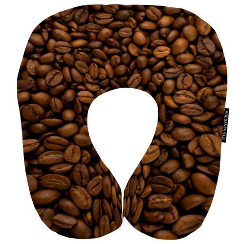 Бархатная дорожная подушка, подголовник с принтом «кофе» 32х30 см(dop_16j098)