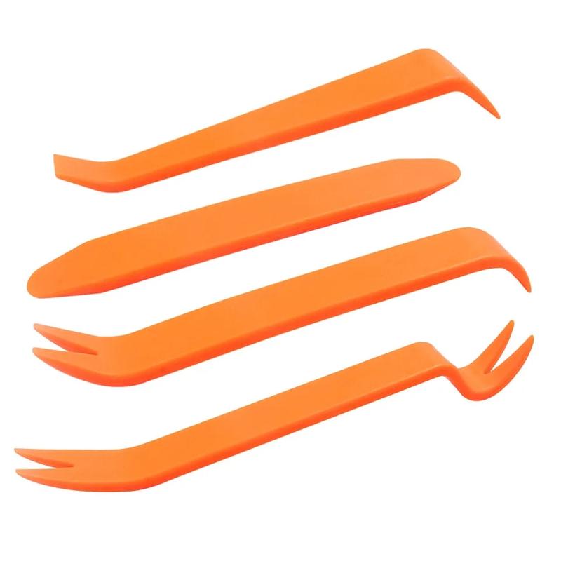 Комплект для быстрого и удобного демонтажа элементов салона автомобиля: пистонов, обшивки, панелей, магнитол. Состоит из 4 пластиковых (не поцарапают/повредят) инструментов разной длины (от 14 до 21 см) и форм (лопатки, прямая, лопатка-вилка, вилки Инструменты подходят для работы с любой моделью автомобиля. Препятствует возможному стиранию внутренней отделки автомобиля Набор универсальный, не важна марка авто Снять можно как обшивку так и клипсы авто Не оставляет следов на пластике (как отвертка или нож) Характеристики: Материал - пластик; Цвет - оранжевый.