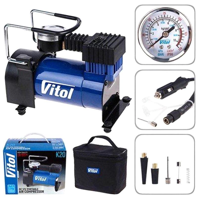 Электронасос для машины, Воздушный компрессор насос (35л/ 100psi/ 12Amp), Автомобильный насос для шин, NST Технические характеристики: - Производительность: 35 л / мин - Время беспрерывной работы: 30 мин. - Максимальный ток 12 А - Максимальное давление 7Атм - Длина провода питания 3м - Длина шланга 1м - Удобная сумка для транспортировки и хранения в комплекте - Рекомендован для колес: R13 - R15 - Максимальное давление, атм: 7 - Торговая марка: VITOL - Тип подключения: гнездо прикуривателя - Ресивер: нет - Манометр: аналоговый - Вид компрессора: однопоршневой - Страна происхождения: Тайвань, провінція Китаю - Сумка для переноски и хранения: да - Производительность, л/мин: 30-40 - Дополнительная комплектация: переходник для спортинвентаря - Тип компрессора: поршневой колеса автомобиля, колеса мотоцикла, камеры велосипеда, надувной матрас, лодку, прочие резиновые изделия. Компрессор из новой линейки на рынке авто аксессуаров изготовлен по новейшим технологиям европейского уровня, которые удовлетворят требования самых привередливых автомобилистов. Каждое изделие имеет индивидуальный серийный номер для полного цикла контроля качества и гарантии. Бесперебойную работу, скорость и мощность компрессоров обеспечивает двигатель поршневого типа - надежность которого обусловлена обмоткой якоря из 100% меди. Модернизированная каждая деталь компрессора! - Изделие имеет металлический поршень с кольцом-уплотнителем с фторпласта, что обеспечит длительную работу. - Радиатор из авиационного алюминия быстро отведет тепло и обезопасит от перегрева всего механизма. - Подшипник серии 608Z в поршневой группе позволит увеличить ресурс работы. - Алюминиевый радиатор для увеличения теплоотвода Компрессоры VITOL - это надежность, подтвержденная 24 месяцами полной гарантии и послегарантийным обслуживанием.