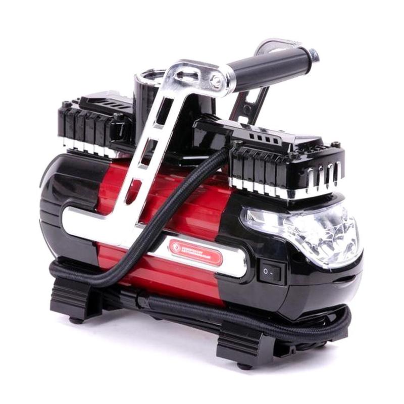 Автомобильный компрессор 12 (40л/мин) INTERTOOL, Электронасос для подкачки шин, Машинный компрессор, NST Назначение Оптимальный показатель давления в шинах - обязательное условие безопасности в дороге и долговечной эксплуатации шин. Автомобильный компрессор INTERTOOL способен накачать за считанные минуты колесо вашего авто до необходимого давления. Поскольку правильный показатель давления помогает продлить срок службы шин, уменьшает расход горючего и в целом улучшает езду. Производительность Максимальное давление 7 бар, скорость нагнетания воздуха 40 л/мин на выходе, что позволяет эффективно выполнять различные задачи. Например, накачать колесо R13 до 2 бар компрессор сможет за 1-2 минуты. Универсальность Помимо прочего, рабочие показатели компрессора позволяют накачать до рабочего состояния колеса мотоциклов или велосипеда, а также мячи, матрацы, круги и любые другие надувные изделия, в том числе благодаря набору насадок, который поставляется в комплекте. Мобильный и удобный Компрессор очень скромных габаритов, поэтому вместе с комплектом и сумкой компактно поместиться даже в самых компактных багажниках. Питание осуществляется от прикуривателя автомобиля 12В, поэтому вы сможете легко накачать колесо в дороге. Длина кабеля питания 3 метра от прикуривателя. В комплекте также предусмотрен переходник с клеммами для работы напрямую от аккумулятора. Встроенный LED-фонарь работает от батареек и от прикуривателя, поможет комфортно накачать колесо даже в темное время суток. . Общие рекомендации 1) Прежде чем включить компрессор лучше завести двигатель, так вы не разрядите аккумулятор. 2) Контролируйте давление накачки по манометру, общий стандарт для автомобильных шин 2 - 2,5 атм. 3) Давайте компрессору остыть, время непрерывной работы не должно превышать 5-10 минут.