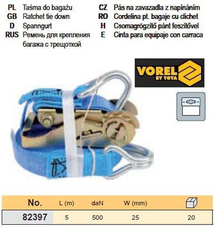 Ремень для крепления багажа польша трещотка 500dan 25 мм х5 м vorel-82397