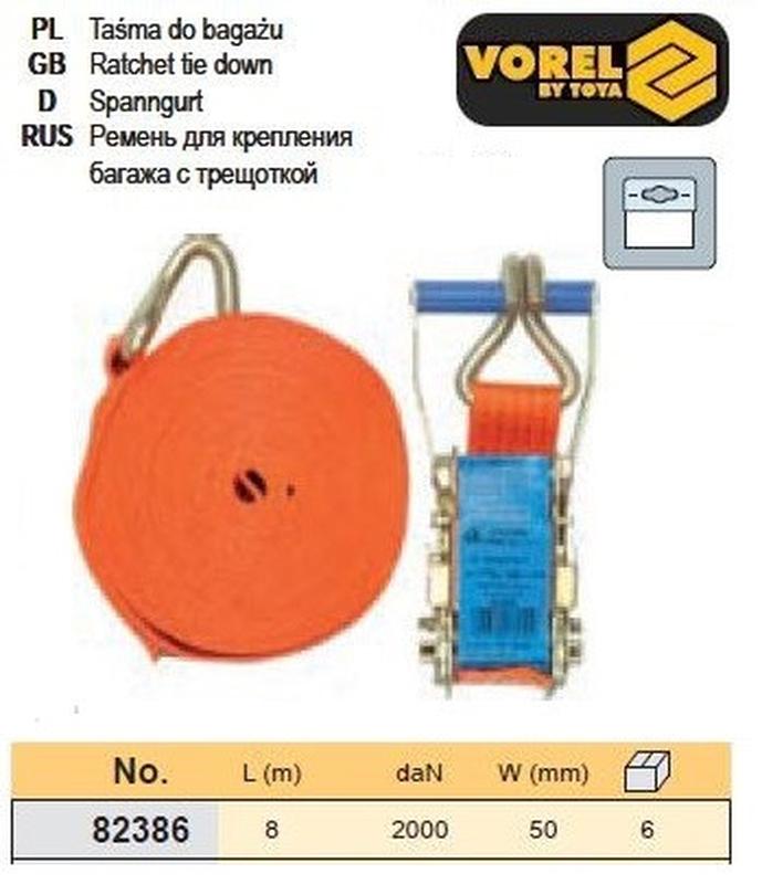 Ремень для крепления багажа польша трещотка крючок 5т 2000dan 50 мм х8 м vorel-82386
